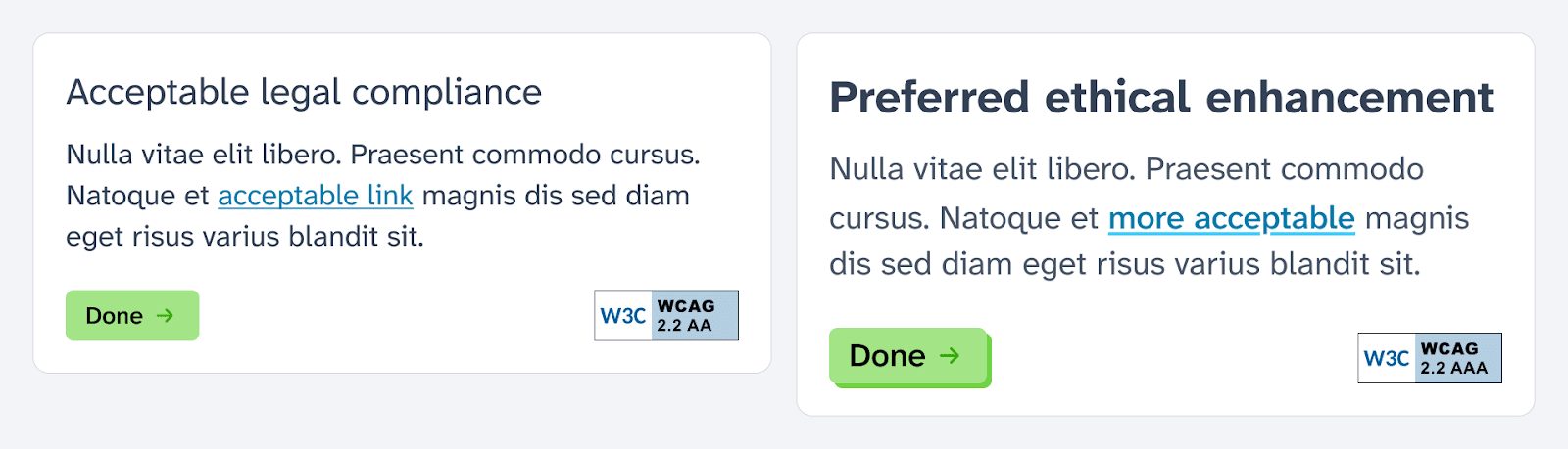 The first passes WCAG 2.2 Level AA compliance. That’s the legal requirement. So we’ve done our job. Right? Perhaps. That’s a great first step.